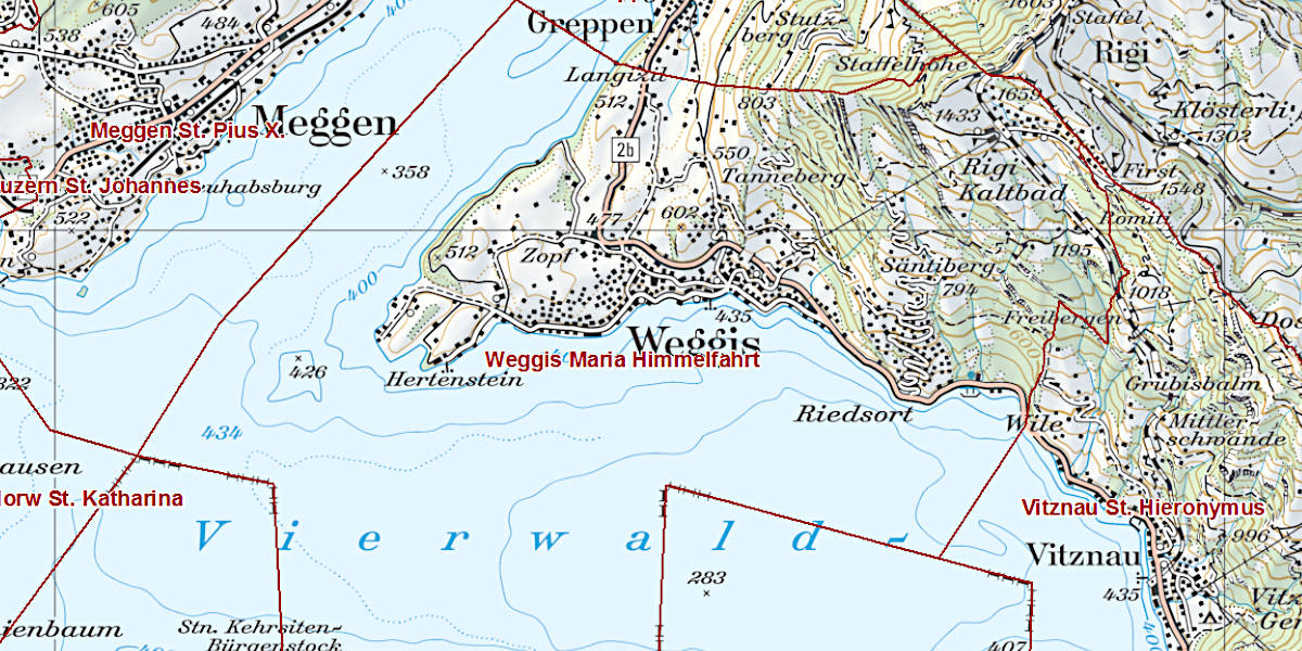 Das Gebiet der katholischen Kirchgemeinde Weggis entspricht dem der politischen Gemeinde Weggis. Die Pfarrei Maria Himmelfahrt gehört kirchlich zur Bistumsregion St. Viktor im Bistum Basel. Zusammen mit den Pfarreien Vitznau und Greppen bildet die Pfarrei Weggis (inkl. Kaplanei Rigi Kaltbad) den Pastoralraum der Luzerner Seepfarreien.