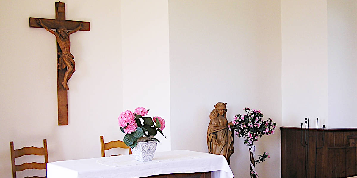 Schon der Auf- und Eingang zur Kapelle ist grosszügiger und bequemer geworden. Wenn man in die Kapelle eintritt, wird man von der einfachen, aber gediegenen Ausstattung überrascht. Neue Bet- und Sitzbänke laden zum Verweilen ein. Der aus Holz erstellte Altartisch, das Holztäfer an den Seitenwänden, und der schmucke Leuchter verleihen dem Raum eine besondere Wärme und heimelige Atmosphäre. Das in der Altarnische aufgemachte, schlichte Kreuz macht die Kapelle zu einem Ort stiller Besinnung. Auch die mit viel Liebe gepflegte Umgebung, machen den Platz der Kapelle zu einem Ort der Ruhe und Beschaulichkeit, der in der Hetze unserer Zeit mehr denn je aufgesucht wird.